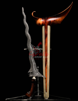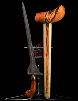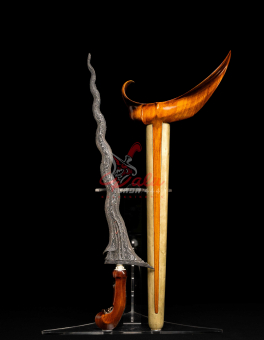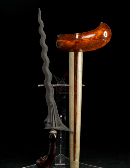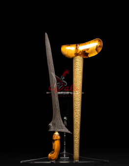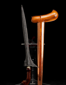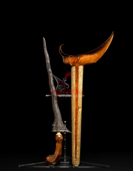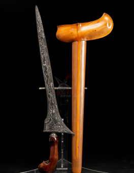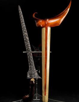 Keris Brojol Pamor Tejo Kinurung Pusaka ini mengenakan busana model gayaman gagrak Surakarta. Kayu yang digunakan adalah kayu trembalo lawasan dengan gandar iras, yaitu dibuat tanpa sambungan sehingga memberikan kesan utuh dan kokoh. Bagian deder—yang di Surakarta dikenal sebagai jejeran—menggunakan model yudawinatan khas Surakarta, juga dari bahan trembalo lawasan. Ukirannya tampak sangat detail, dengan cecekan… selengkapnya