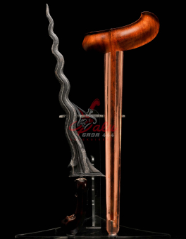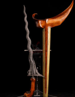 Keris Waluring Luk 15 Kalawijan Pusaka ini hadir dengan busana Gayaman gagrak Surakarta yang dibuat dari kayu trembalo Aceh lawasan. Meski berusia tua, kondisinya masih sangat terjaga. Serat trembalo tampak tegas, nginden, dan memberi kesan estetis yang kuat pada keseluruhan wadag pusaka. Gaya busananya semakin lengkap dengan pendok mamas model blewah Surakarta yang menjadi penutup… selengkapnya